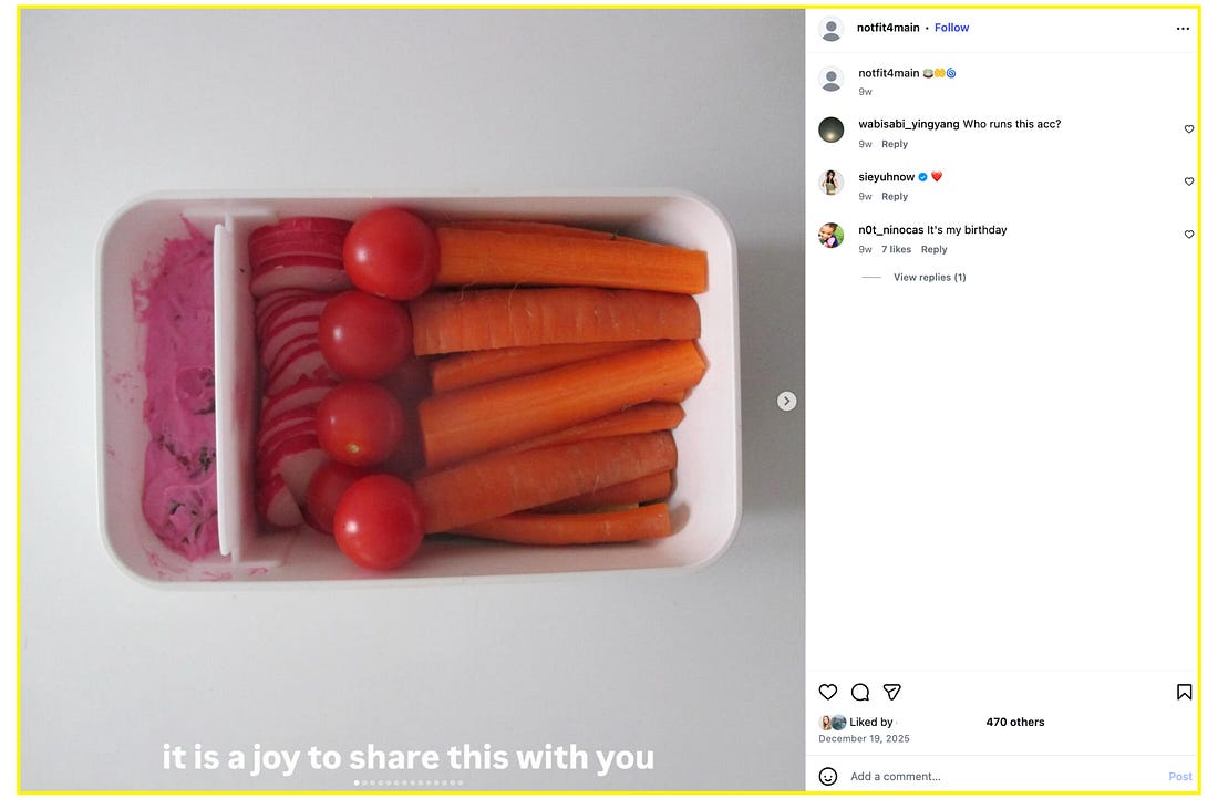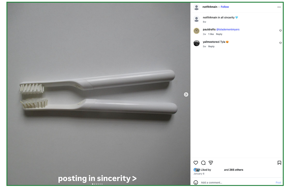 Before we get into today’s newsletter, an invite! Casey Lewis of After School and I are hosting a subscriber happy hour in Austin on March 15th. There will be drinks, bites, and screen time comparisons. Thank you to Nuuly for partnering with us on it! You can RSVP here. Why @Instagram has a finstaA few weeks ago, a selfie of Fred again.. came across my Instagram feed. Except it wasn’t from his account. It was posted on an account called @notfit4main with the caption “hey guys im takin overrrr”. I clicked into the account. It had no profile photo and the bio was “guess who… 🫡”. I did immediately notice one thing though. Almost every person who I follow that works at Meta, also followed this account. I scrolled through the content. A lot of it is what I’d call inspirational shitposts. Low quality photos with text like “respect anyone trying” and “make it. (i did.)”. It’s very 2014. Then there are talent takeovers from people like Tyrell Hampton and Tamir Omari. The first takeover was from Tyla, who many commenters still think runs the account as her own finsta. I searched if anything had been written about who was behind the account and found nothing. When I emailed Instagram about @notfit4main, they confirmed that they are indeed behind the account. Of course, I was curious about the strategy, but I was also curious why Instagram wanted to create a finsta in the first place. What does it mean when the platform itself has an account called @notfit4main? I found out below. Rachel Karten: First, can you tell me a bit about your role at Meta? Jackie Tan: I’m the creative strategist who oversees the @Instagram channel, as well as @Threads and @Facebook. I lead the strategy of our finsta @notfit4main. I also help with various projects like Close Friends Only, Carversations, fashion initiatives and other various talent driven projects on @Instagram. Rachel: Why did Instagram create a finsta? Jackie: We have been talking about starting a finsta for so long now. We really wanted creativity at the heart of the account. We do a lot of programming on @Instagram, but we really thought @notfit4main could hone in on that brand ethos. It’s a carefree and open space that celebrates and unlocks creativity through spontaneous and mysterious posts. Rachel: How did you come up with the name for it? Jackie: There was a lot of back and forth. We had a lot of names. We were like, should it be @instagrammer or @instagram_user? We always wanted it to feel anonymous though, which is why there’s no profile photo. We felt that @notfit4main really encompasses what a finsta is—alluding to close friends, being intimate with your friends, and posting things that maybe you wouldn’t exactly share to main. We really love the idea of it not having a singular identity and being anonymous. Like those ghost accounts you see on Instagram and playing into people not really knowing whose account it is. And that’s exactly how people use their finstas, like Addison Rae who has @freedomandcontrol, which she never outright says “hey this is my finsta”. We want @notfit4main to feel separate from @Instagram since this is how people are using finstas on the platform. Rachel: There are two buckets that the account posts, the first is talent takeovers. People like Tyla, Fred again.., and more have all posted from the account. Can you talk to me about how those work? Jackie: @notfit4main takeovers are a great way for our partners to talk about their own projects in a new way. For example, the Fred again.. takeover coincided with Instagram’s Ask It Anyway campaign. His team was excited about centering the takeover around his time in NYC. We were able to feature some of the shows he played in NY as well as his new song “scared”. We see these takeovers as a fun way to show that Instagram really stands behind these people by giving them another outlet and way to show up on the platform. We’ve also worked with content creators. We just did our Close Friends Only podcast episode drop recently and had a screening at a movie theater in NY. We invited the creator Tamir Omari, gave him an old vintage iPhone, and just said go do your thing. At Instagram events, like this one, we’ve been handing them off to creators and letting them run wild. Rachel: The second bucket is what I’d call…inspirational shitposts. It reminds me of photos I’d take in 2014. They feel intentionally ugly. Jackie: I grew up on the internet and just feel like what’s old is new again. It always recycles. On the platform right now I’ve been seeing a lot of creators doing text posts on images. We actually commissioned the artist Lola Myers, who’s based in New York, to take these photos. Her work includes these sort of “Post it anyway” lines. So we thought it was a good tie-in to the brand ethos. Rachel: Does the official Instagram account ever interact with the finsta? Jackie: We don’t want to outright be like “This is @Instagram’s finsta” or whatnot... When we do interact with @notfit4main, we use the repost feature on @Instagram as a subtle way to connect the two accounts. In the past, we would have to share content through @Instagram Stories, but now we can use the repost function from @notfit4main to @Instagram. This feels more lightweight and anonymous, since the content just appears on our audience's timeline rather than being posted on our stories. We typically reserve these reposts for talent takeover moments, allowing us to interact between the accounts without drawing too much attention to the connection... Rachel: Finally, the entire concept of a “finsta” was created to combat the pressure of maintaining a super curated main feed. Some might argue that a lot of that pressure has come from the changes made to Instagram over the years. What would you say to a person who might feel confused by the fact that even the official platform has a finsta? Jackie: @notfit4main highlights a different si